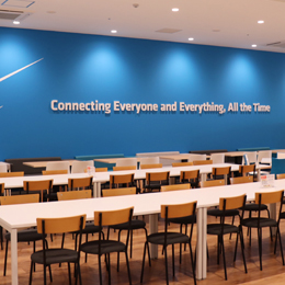 広々とした社員食堂でリフレッシュが可能。パンや軽食を販売している売店もあります。