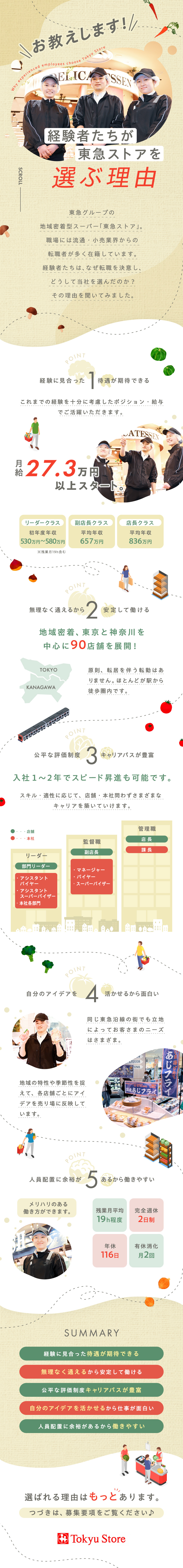 【関東】スーパー『Tokyu Store』の店長・副店長候補/東急Gの事業安定性/実質年休123日