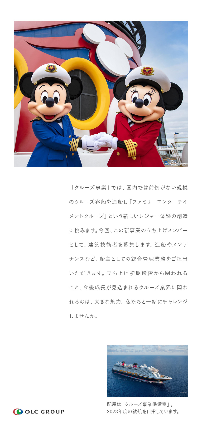 NEW建築技術者/新規クルーズ事業/年間休日123日/フレックス制