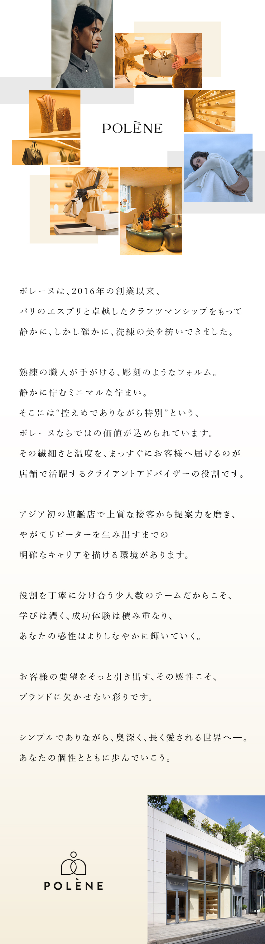 パリ発・レザーブランド「ポレーヌ」の販売スタッフ/未経験歓迎