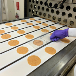 焼き色や大きさを基準に合わせて調整します。