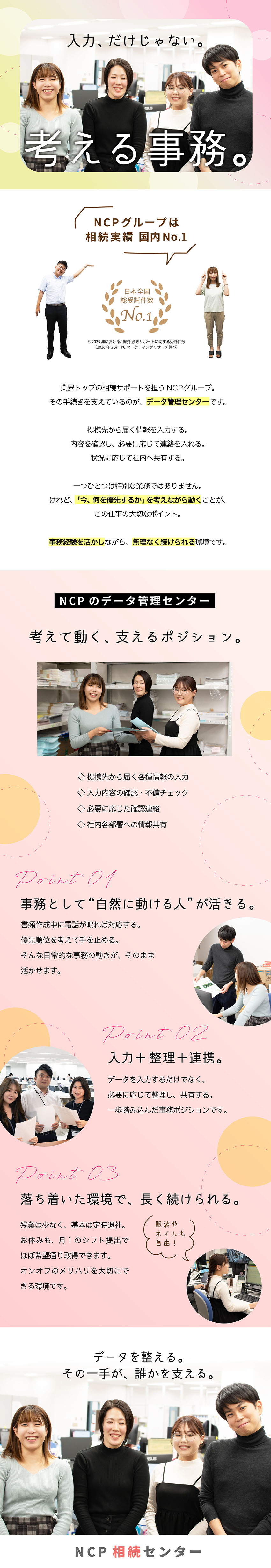 業界No.1グループを支える【事務/データ入力】正確な入力と気配りで、業務を円滑に進めるポジション