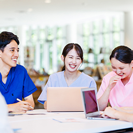 医療業界は専門用語や独自のルールが多く、最初は分からないことだらけ。自分で調べる姿勢が欠かせません。また医師や看護師など社内の専門職や施設スタッフ、入居者様やご家族など、様々な方とコミュニケーションを取るため、相手に合わせた柔軟な対応が大切です。