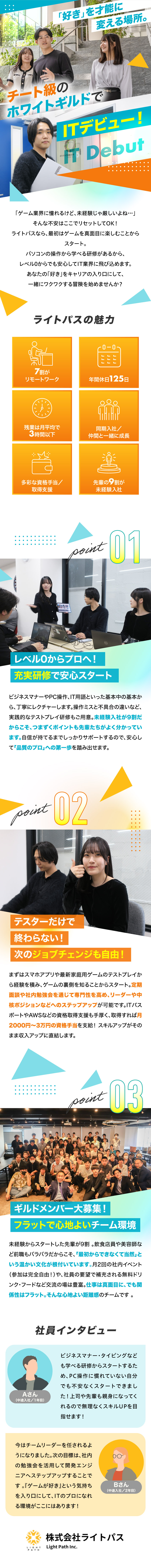 ゲームテスター/未経験歓迎/年休125日/リモートワーク可能