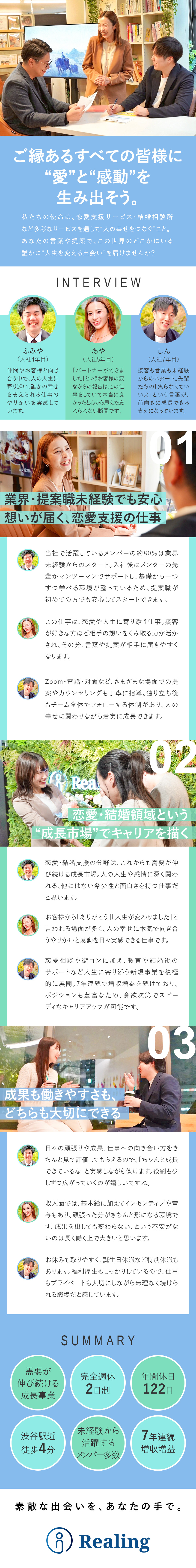 【恋愛業界・提案職未経験OK】7年連続で拡大・成長中の企業!あなたの人柄と意欲がそのまま活かせます。