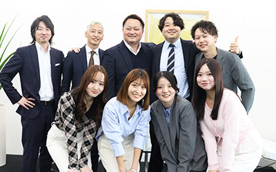 先輩たちは100%未経験スタート!約3カ月の手厚い研修と、同じ目的を持ったチーム制で、協力しあいながら安心してスキルを磨けます。さらに当社は、13年連続売上UP&社員数UPという盤石な基盤に加え、20代の管理職登用実績も多数!安定環境と早期キャリアアップの両方が叶う、まさに成長期真っ只中の会社です。