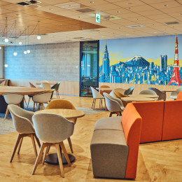 きれいに整えられた休憩スペース。社員同士の団らんなども楽しめるリラックス空間を完備しています。