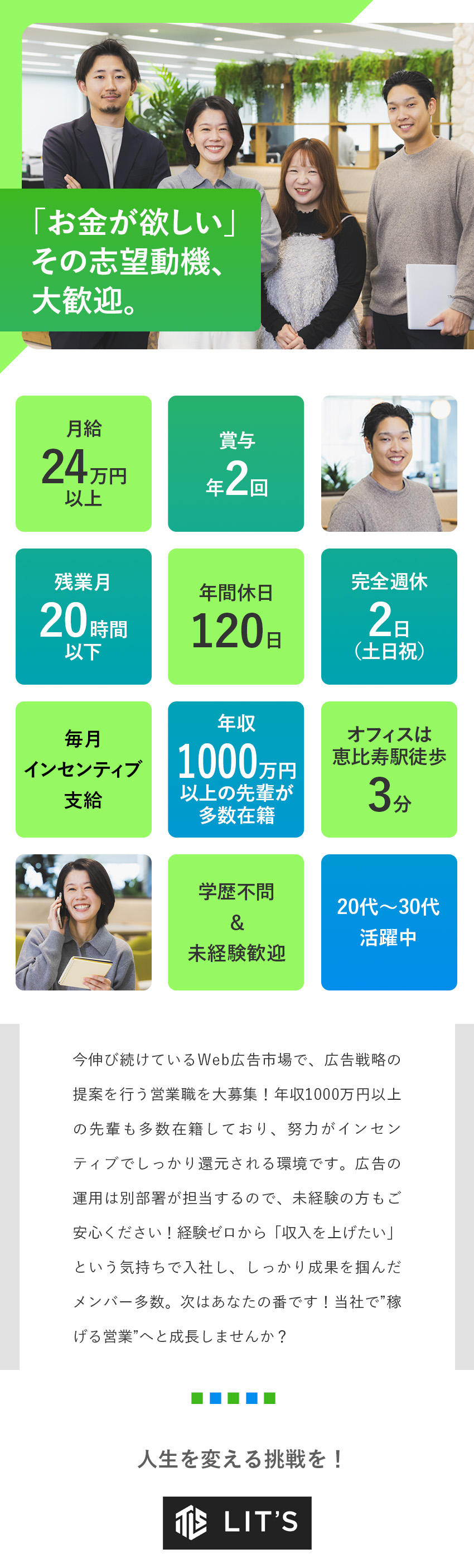 Webマーケティング営業/未経験可/賞与年2回/年休120日