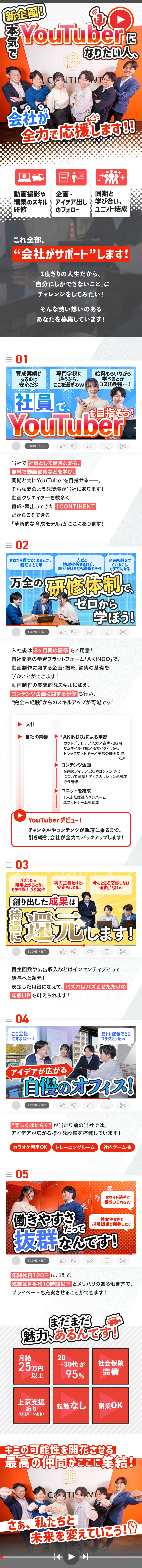 雇用と安定した収入を得られる環境だからこそ、YouTuberという「やりたいこと」に全力投球できるのは、大きなやりがいを感じられるはずです!