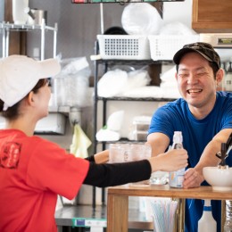 お客様に限らず、「人」との関わりを大切にしている同社。アルバイトとも冗談交じりに会話したり、忙しい時でも「大変だ」と言いながらも、全員が笑顔で乗り切るなど、一体感を覚えながら働いています。常連のお客様も多く、時には会話を楽しむことも。店内だけでなく、外出時にたまたま出会って声を掛けられることもあるそう。こうした人間関係が、仕事の面白さにもつながっています。