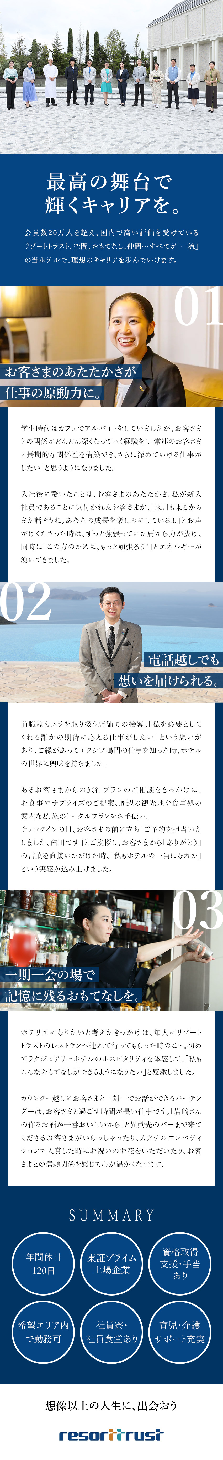 会員制ホテルスタッフ/福利厚生・研修充実/年休120日