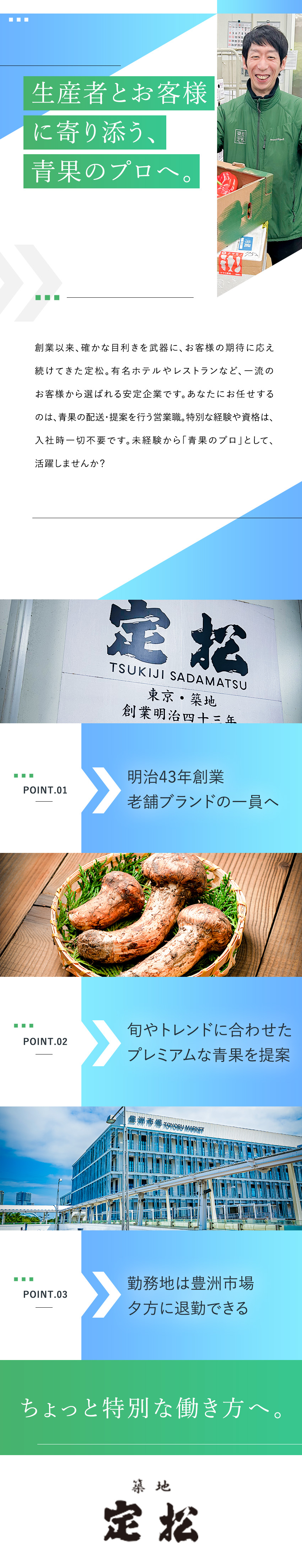 青果のルート営業/未経験歓迎/豊洲市場勤務/月給28.8万円