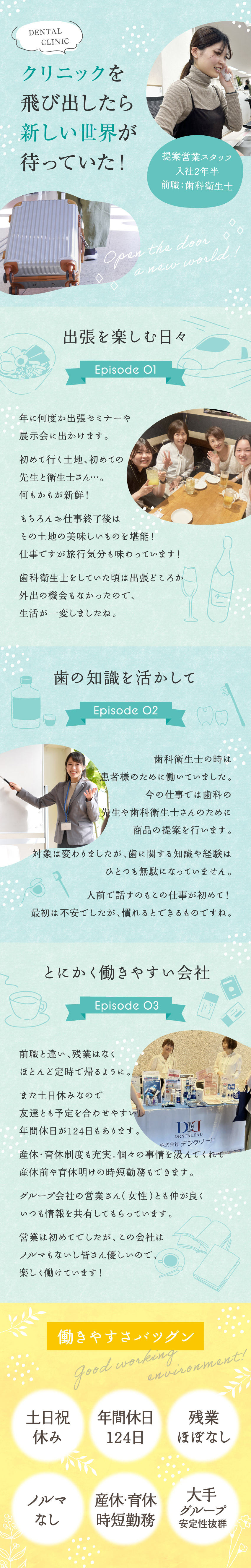 歯科医院への提案営業/入社祝金50万円/ノルマなし/残業なし