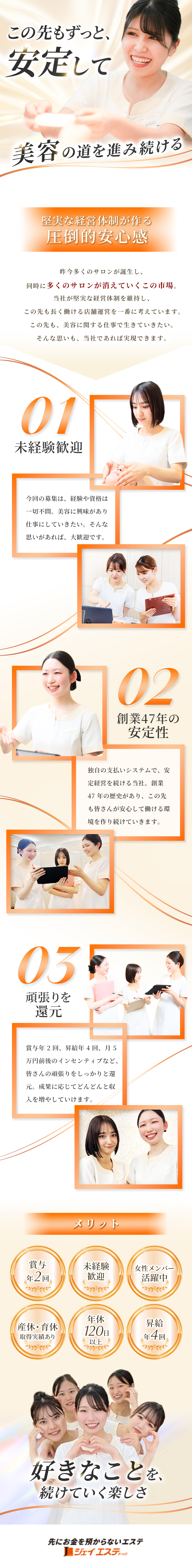 エステティシャン/未経験歓迎/賞与年2回/昇給年4回あり
