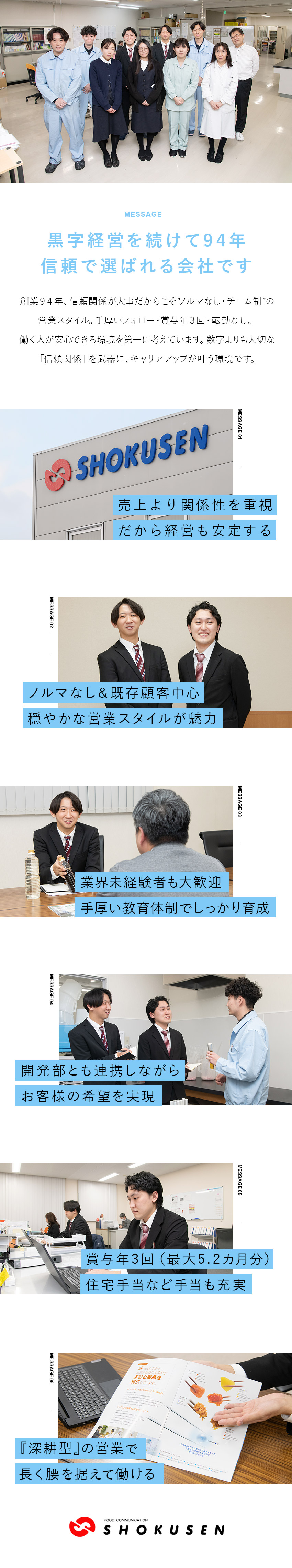 既存中心の法人営業/創業94年の安定基盤/賞与年3回