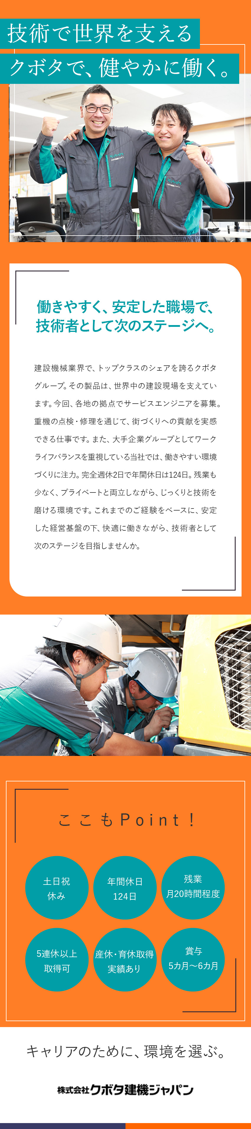 サービスエンジニア/クボタグループ/賞与5~6カ月分