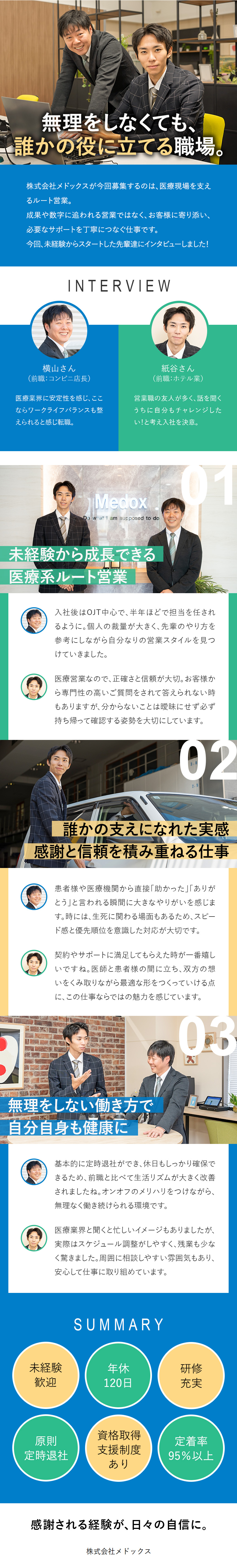 ルート営業/定着率95%/残業ほぼなし/有給消化100%