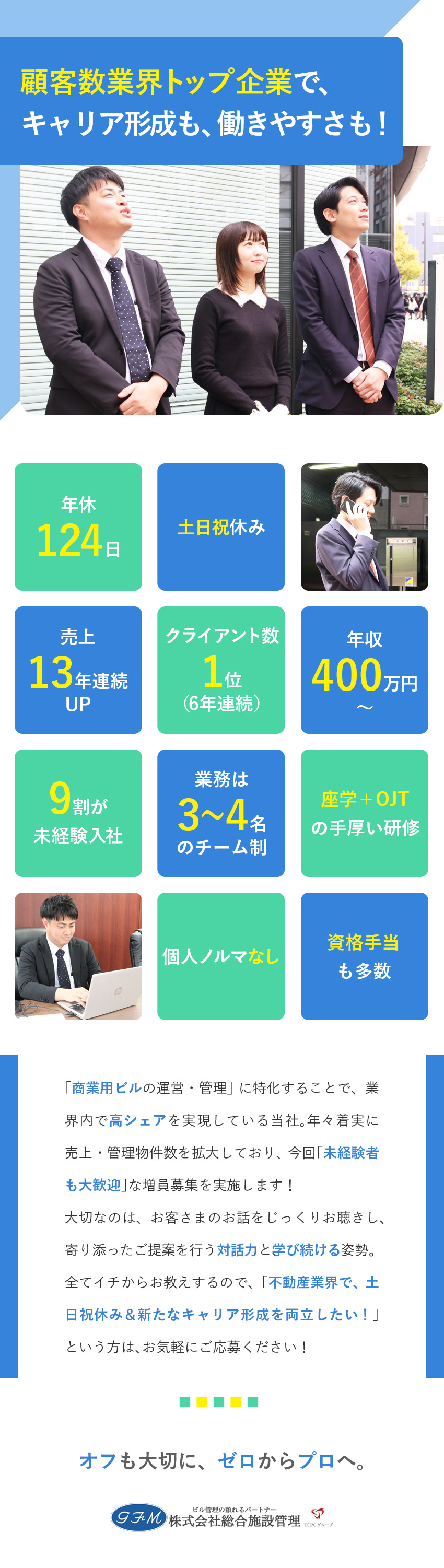 ビルの総合マネジメント/土日祝休み/ノルマ無/月給30万円~