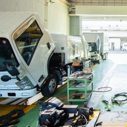 大阪府寝屋川市に大型工場を所有しており、大型トラックやトレーラーの整備をメインに行っています。大型車両ならではの工具の使い方や、整備に必要な技術を“イチから”身につけることが可能です。