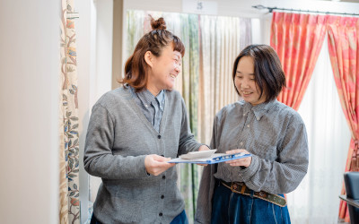 お客さまがカーテンやインテリアを購入されるのは、新築や引っ越しなど、新生活をスタートさせるタイミングが多いもの。新しい人生の舞台となる住まいのコーディネートをお手伝いし、お客さまと喜びを共有できることがこの仕事の醍醐味です。