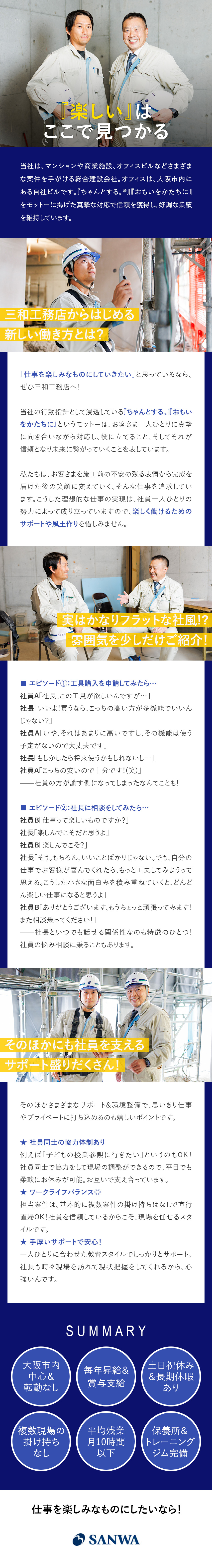 成長企業の施工管理/大阪市内中心/残業ほぼなし/直行直帰可