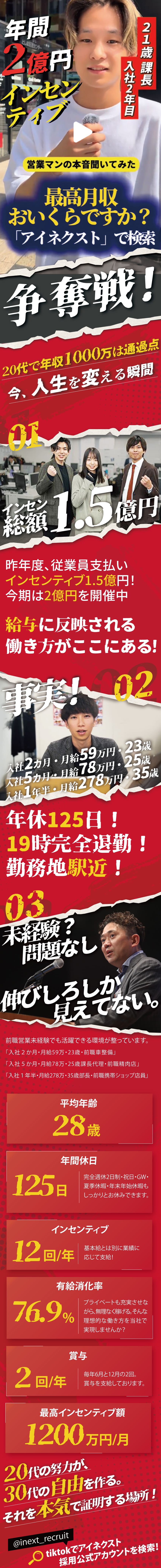 「稼げる」「休める」「成長できる」三拍子揃ったアイネクストで、自分史上最高のキャリアを実現しましょう!