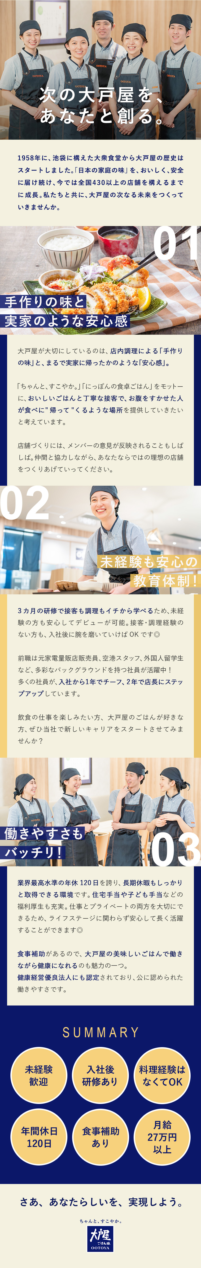 大戸屋スタッフ・店長候補/未経験歓迎/年休120日/住宅手当