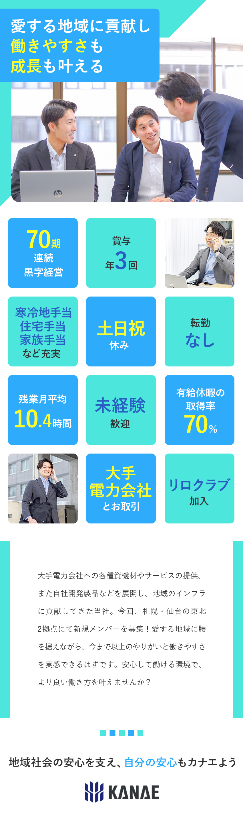 インフラ商社の法人ルート営業/未経験歓迎/賞与年3回/転勤無