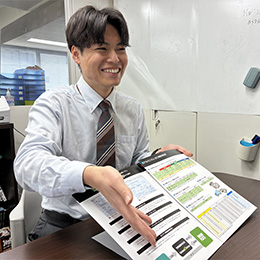 以前は外食産業で働いていたので、商品知識も営業経験もゼロからスタートしました。製品の種類が多くて知識の習得に苦労しましたが、やさしい先輩が丁寧にサポートしてくれたので乗り越えることができました。