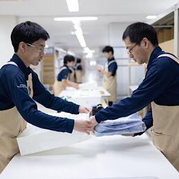 障がい者スタッフを含むチームみんなで一緒に、制服の仕分・梱包・発送業務を行います。