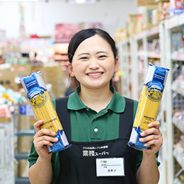 スタッフさんに仕事の魅力を尋ねると、楽しそうに多くを語っていただきました。「業務スーパーは一般のスーパーとは一味違った商品を扱えるのも面白いポイントです」というお話も興味深かったです。