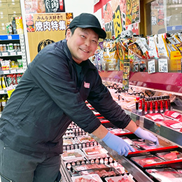 牛・豚のスライス加工、トリミング、仕入れ、接客・販売、売場づくりなど