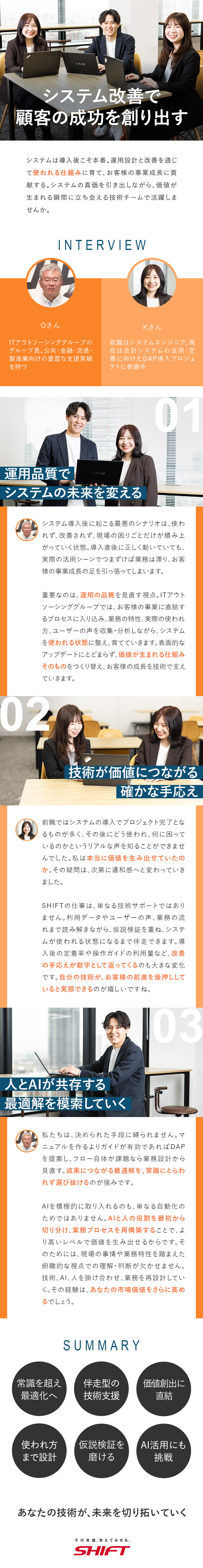 上記のように部分的な支援で終わらず、これらを統合し、AIも活用しながら業務を再設計するのがSHIFTの価値提供スタイルです。
