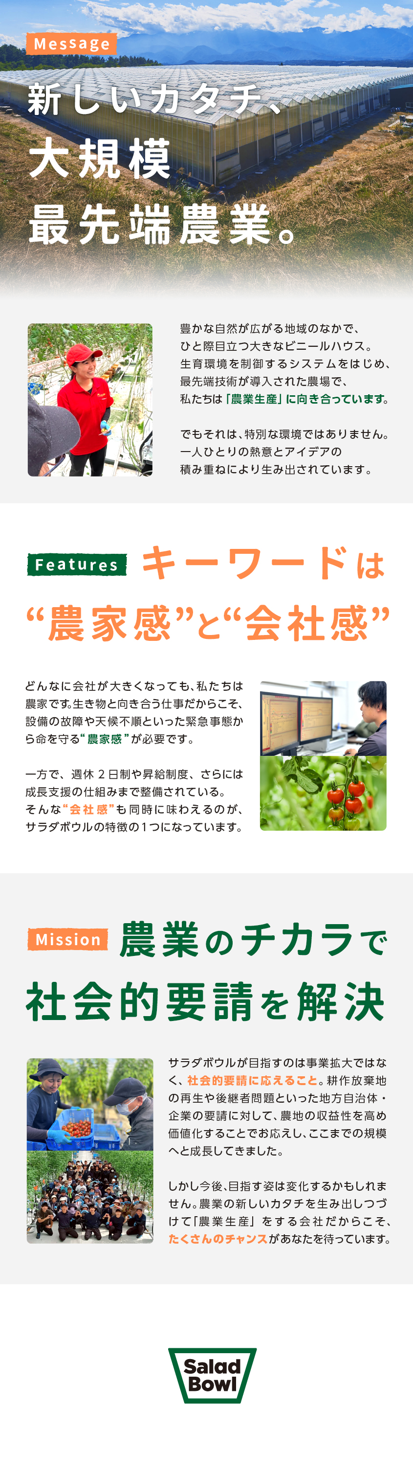 農業の新しいカタチを創る生産管理/未経験歓迎/完全週休2日