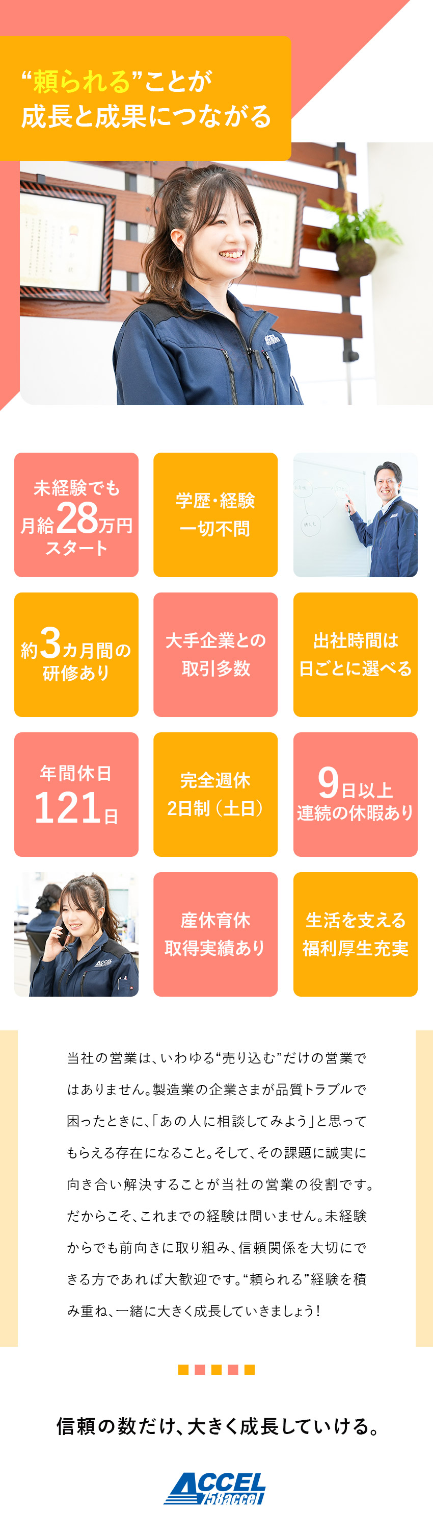 検査・選別サービスの法人営業/月給28万円以上/年休121日
