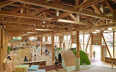飛騨五木は、木材をふんだんに使った「あそび場」や「建築」を通して、多様性や変化を受け入れる“寛容さ”と、人と人とがつながりを信じ合える“信頼”を育む地域社会を目指しています。