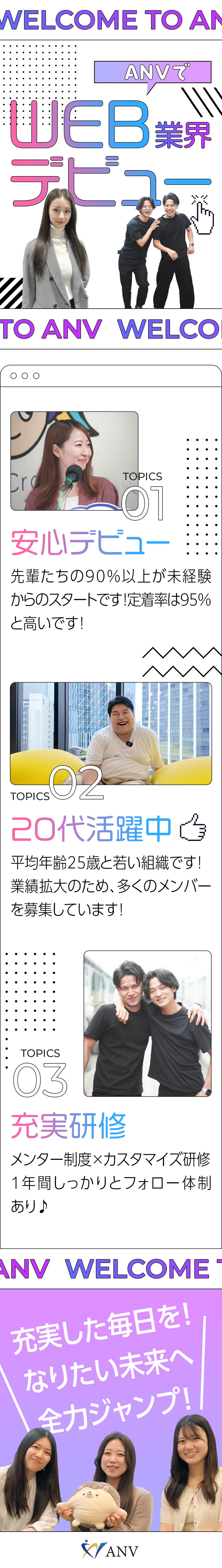 ANVは、活気ある若手メンバーが中心となって急成長を続けるベンチャー企業です。