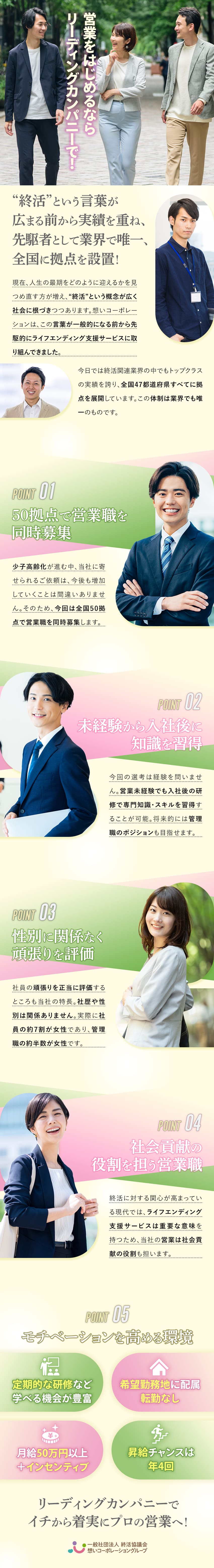 終活サービスの営業職/月給50万円~/インセンティブあり