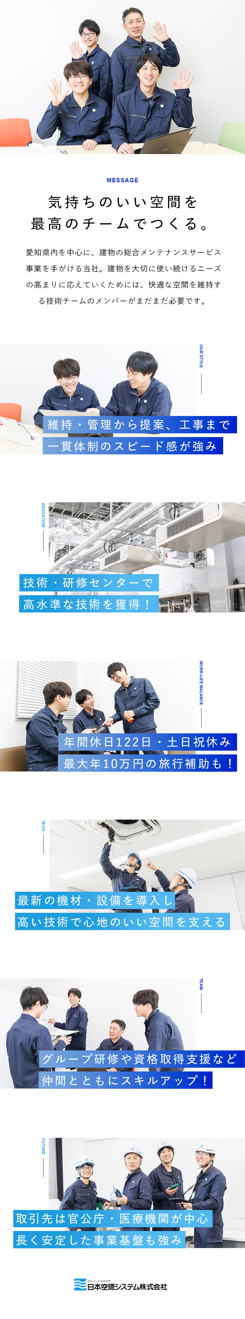 空調設備の施工管理/年休122日/完全週休2日/転勤なし
