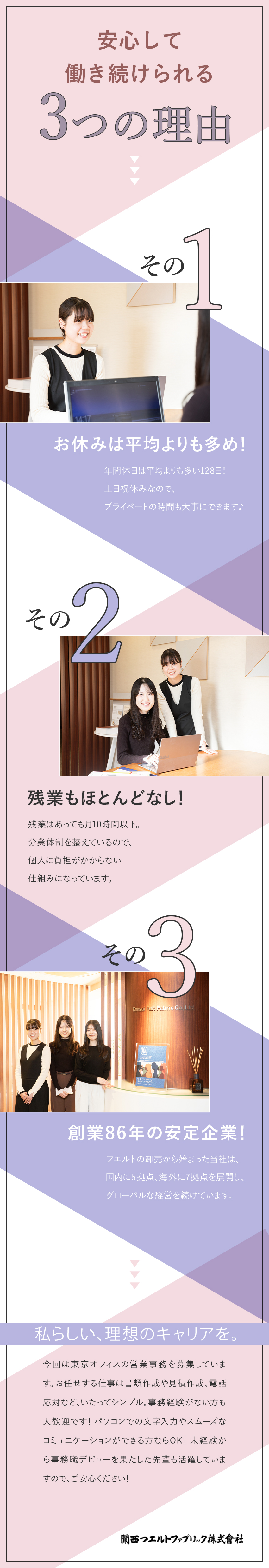 未経験歓迎の営業事務/賞与4.9カ月分/年休128日/残業少