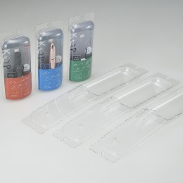 プラスチックシートを真空成型し、商品形状に合わせて製造するパッケージ。化粧品、文具、雑貨、工具など幅広い分野で使用されています。