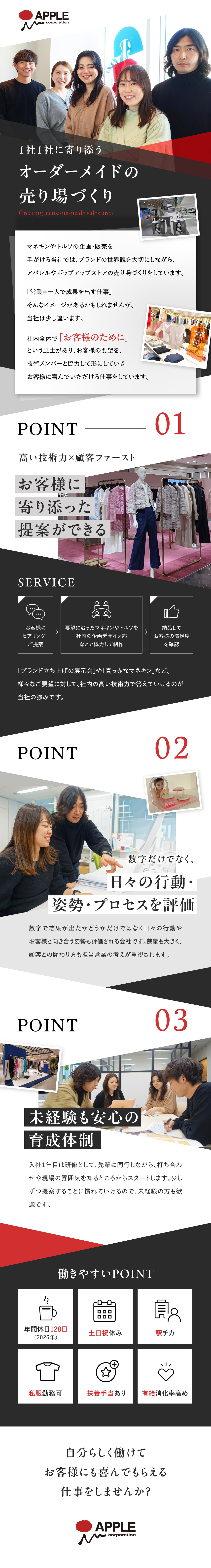 【所沢】アパレルディスプレイ設計◆年休126日(土日祝休み)未経験歓迎/リーダー候補/研修制度充実