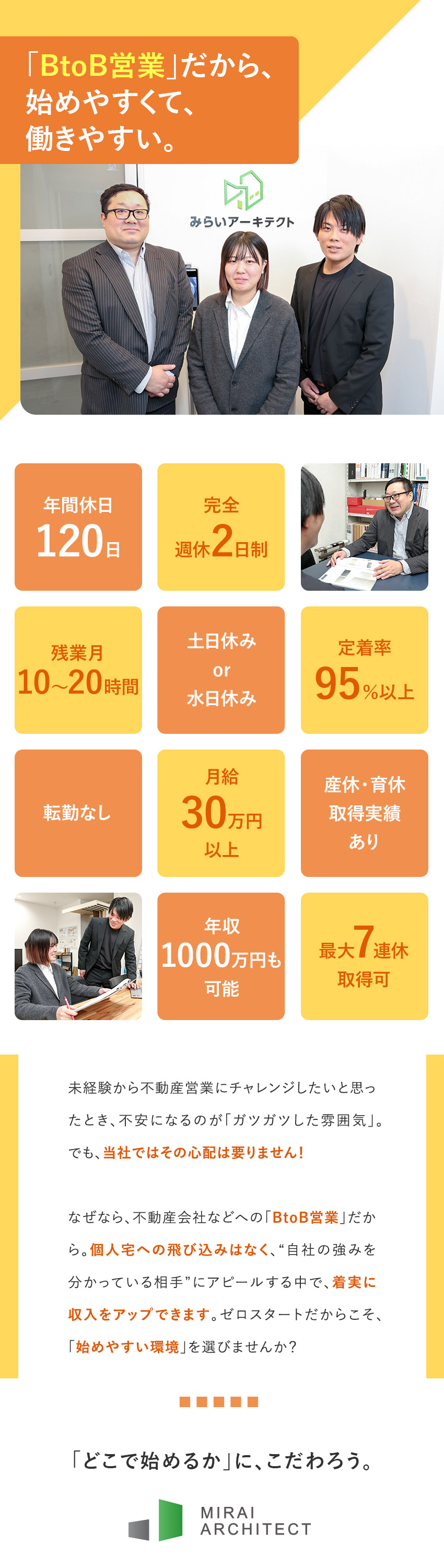 法人反響営業/未経験歓迎/定着率95%/年休120日