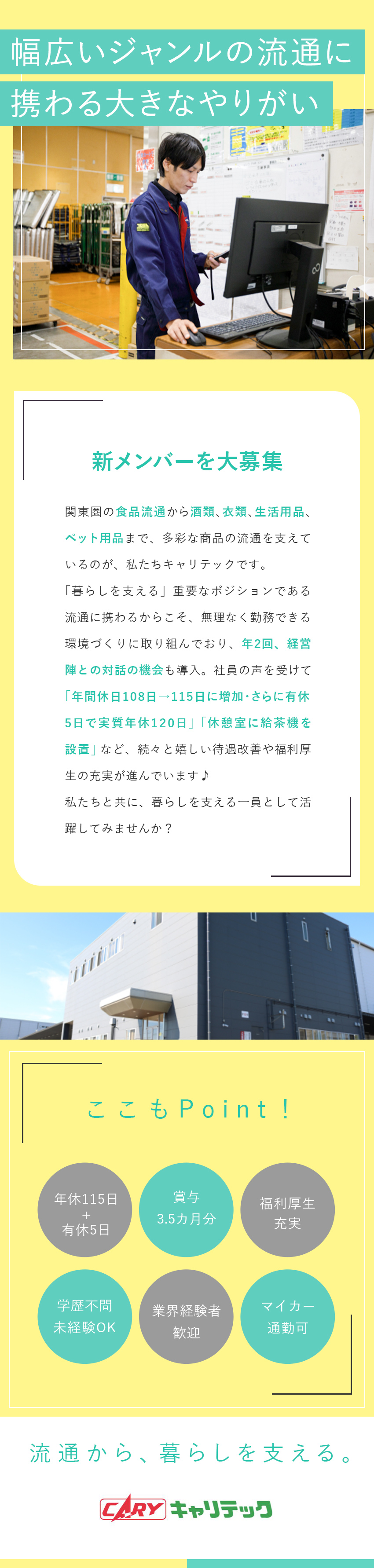 未経験OKの倉庫管理/実質年休120日/年間賞与3.5カ月