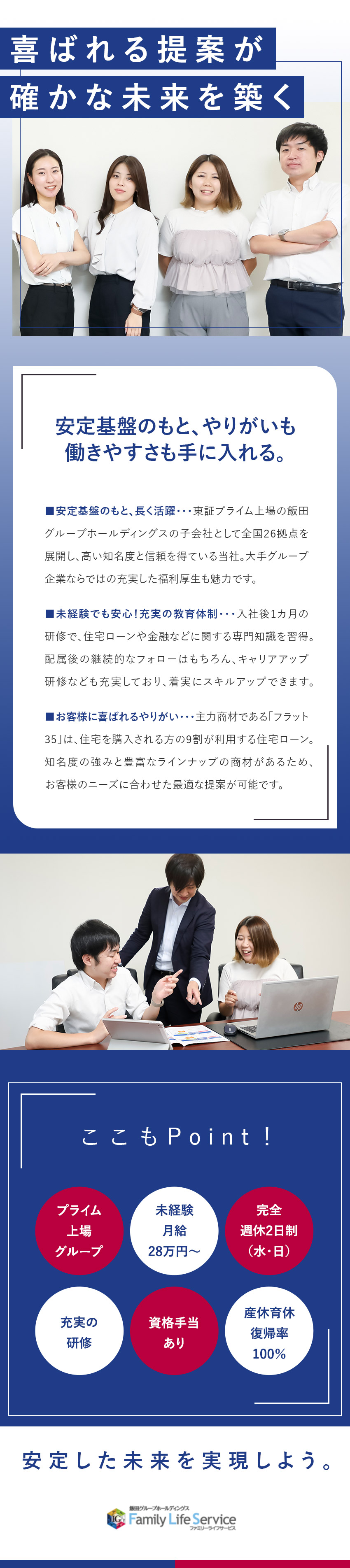住宅ローンの営業/未経験者も月給28万円~/年休120日以上