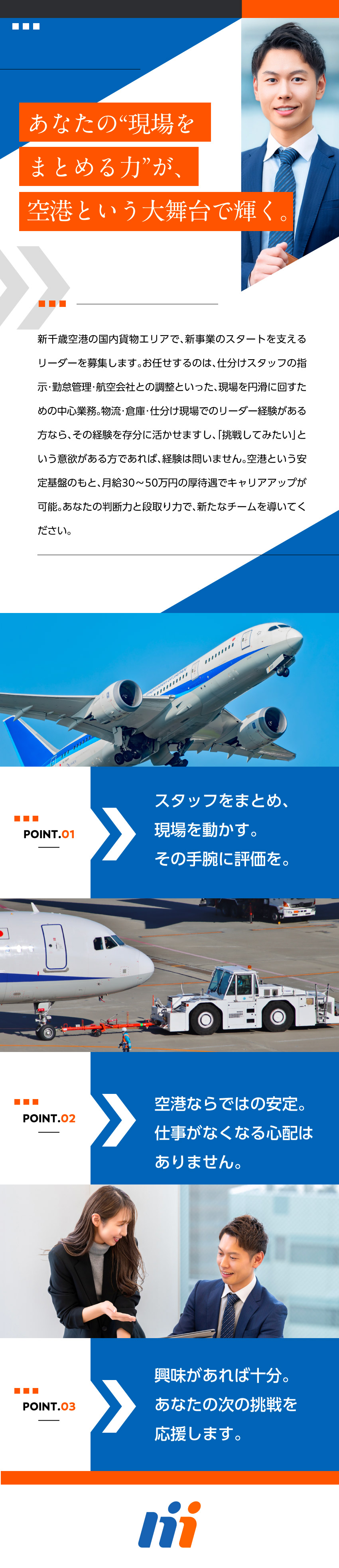空港の貨物エリアの現場管理/月給30万円~/オープニング募集