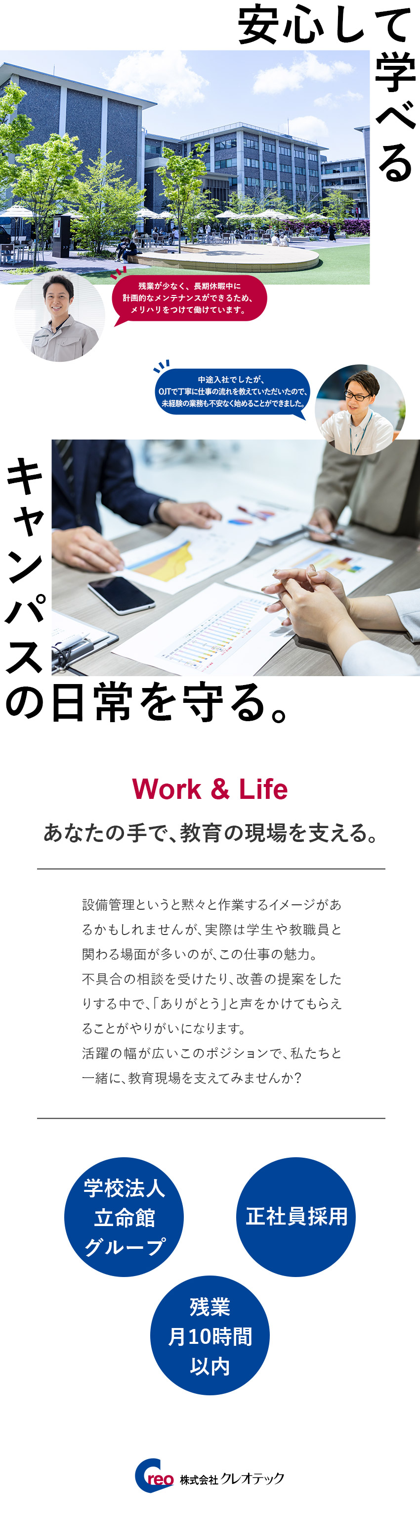 【京都】大学キャンパスの設備保守管理◆年休134(土日祝)/立命館100%出資/2026年1月採用