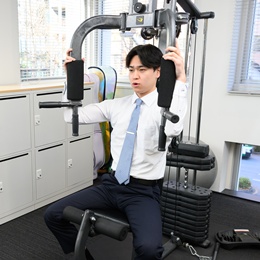 仕事の合間に一息。社内ジムでリフレッシュしながら、全力で成長できる環境です!