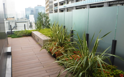 当社は、公共の造園工事や公園整備、一般家庭の造園工事などの幅広い造園事業を行っています。特に近年は都心部における屋上緑化・壁面緑化などの案件が増加中。屋上緑化とは、建築物の断熱性や景観などを目的として、屋上や屋根などに植物を植えることで、建物の壁に植物を植えて緑化することが壁面緑化です。CO2吸収効果のある「緑」には、地球温暖化やヒートアイランド現象の抑止効果があるため、東京都では一定規模以上の建築物に屋上緑化が義務付けられています。環境問題の深刻化と比例して私たちの仕事は日々需要が高まっており、今後さらに注目される事業として、大きなやりがいと誇りを持って取り組んでいけるでしょう。