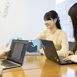 相談や提案もその場で確認。プロモーションを成功させるという一つの目的のために、役職や部署に関わらず、柔軟に話し合える環境があります。